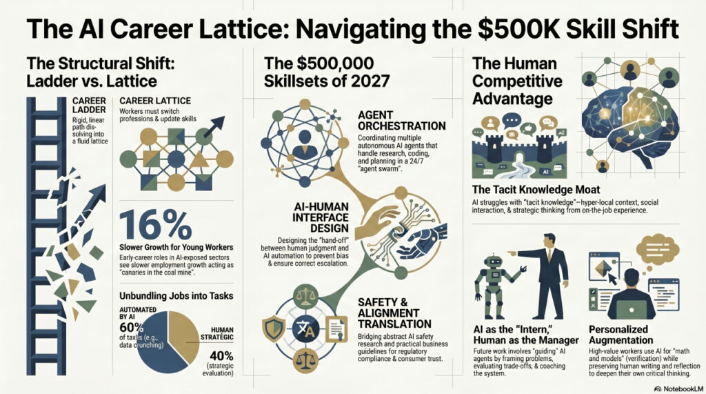 Prednost first mover-a je realna. Za najvrednije uloge 2027. godine orkestracija agenata, dizajn interfejsa čovek-AI, prevođenje AI bezbednosti ne postoje ustanovljene kvalifikacije. Ne postoji diploma. Ekspertiza se gradi tako što se gradi sa alatima, sada, pre nego što svi ostali shvate.